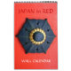 Väggkalendern med härlig fotografi av japanska platser och anmärker presentera den röda färgen.