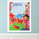 Vintage resor poster för Japan och visar hjort, natur och tempel.