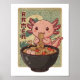 Japanese Anime Axolotls Ramen Black Axolotl Eating Poster