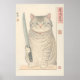 Japanese Cat Print Funny Tabby Cat with Knife Poster