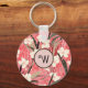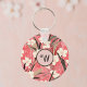 Japanese Floral in Salmon Pink White Red w Initial Nyckelring