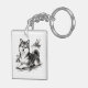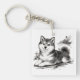 水墨画タッチで描かれた、くつろぐ子犬のアクリルキーホルダー。