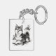 A charming acrylic keychain featuring a relaxed puppy illustrated in a Japanese ink painting style.