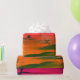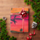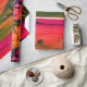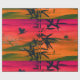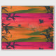 Vackert Papper med japansk konst med färgstark Orange och Rosa solnedgång bakom vackert landskap