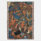 Wada Heita Tanenaga dödade en stor pyton genom att köra in sitt svärd i bakhuvudet med ett vattenfall. Edo Period. Klassisk japansk konst från Utagawa Kuniyoshi i mitten av 1800-talet.