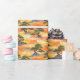 Japanese-inspired watercolor pattern featuring sculpted bonsai pine trees rising from rocky mountains and drifting through glowing golden clouds. This small-scale version keeps the warm amber tones refined and balanced, making it ideal for gift wrap, stationery, home décor, and elegant everyday products.