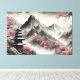 Du kan använda illustrationen som ett poster eller kanvastryck, eller flytta designen till vilken annan dekoration som helst. Digitalmålning av ett landskap med berg, pagodas och körsbärs blommar. Stil i målningen påminner om traditionella kinesiska eller japanska landskapsmålningar.