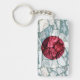 Nyckelkedja med en stiliserad japansk flagga i sten och sten. Tålig design för turister, utvandrare, resenärer eller som souvenirer. Det eller den enkla identifieringen på flygplatsen som bagagedeeller.
