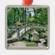 En pikturesk japansk bågbro spänner lätt över en stillastående damm, vars elegant reflekterar i det stilla vatten nedan. Bron är omgiven av lush greenergiy och innesluter den tidlösa skönheten hos japansk trädgårdsestetik.