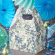 Japansk Blåa blommor-utskrift av Blommigt i asiatisk konst - Den här enkla utskriften av träblock kommer från Japan, från ett japanskt designmagasin från 1902. Denna tolkning är en rustik blå och vit version av originalet.