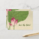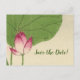 Det här vackra sparandet av datumet vykort har en vattenfärg i vintage stil på en liljepad och en blomma. Samordnar med andra produkter av japansk fågelfärg bröllop. Påminn dina gäster att märka sina kalendrar för din speciella dag! Färger: grönt, neutralt och stänk i shock rosa