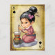 Japansk flicka i Kimono matlagning ris. Från japanska nöjda uppspelningskort
