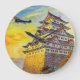 Reser japansk flygtransportluft för vintage affischvisning som en propeller planerar och ett pagodatempel.