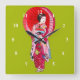 Japansk Geisha röd kimono söt konst Fyrkantig Klocka