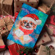 Japansk julafton för Chin Breed-Hund har en vattenfärg av japanskt chin med en röd julklapp, en röd julscarf och en galaxisk vattenfärg.