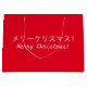 En julklapp med japansk och engelsk skrift. Det är önskemål god jul. Det röda färg är mycket festligt och kristet.