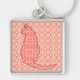 Japansk katt - korall Orange Batik Fyrkantig Silverfärgad Nyckelring