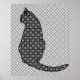 Digitalgrafik med blandad media från en japansk inspirerad sitta-katt, i en stiliserad blommigt, mot en kimonobakgrund - Svart och vit med skuggor av silver grått/grått