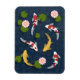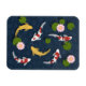 Vackra minimalistiska vektorbilder av färgfulla japanska koifiskar som simmar mellan vatten lilies i en damm. Koi är en lätt färgad karp av prydnadssorter som används i Japan.