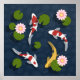 Vackra minimalistiska vektorbilder av färgfulla japanska koifiskar som simmar mellan vatten lilies i en damm. Koi är en lätt färgad karp av prydnadssorter som används i Japan.