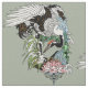Japansk kranfågel i trädgårdslandskapet med vatten lilja. Illustration. Feng Shui-tema