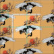 Japansk kran med gren av blomning sakura och röd sol.Illustration. Feng Shui-tema