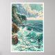 Japansk kustkonsttryck Blå havsvågor, Klippig Poster