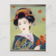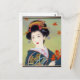Japansk kvinna i blå kimono vykort