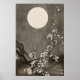 Japansk månne körsbärsblommas väggkonsttryck Vintage Zen Sakura Illustration