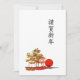 Denna julkortdesign har japansk soluppgång, japanskt nyårskort.