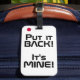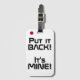 Japans nationella Flagga Funny Patriotic Luggage Tag med Japans nationella färg som täcker framsidan av märkrn. Lustigt text "Sätt tillbaka det!" Det är MINE" är skrivet över flagga färg. Anpassadet Text är fullt ut med funktionen "Anpassa den!". Andra sidan av märkrn är reserverad för din information. Den här roligten är Japans resväska och perfektens följeslagare till vilken tillfälle som helst. © 2024 WorldOfWorld