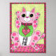 Japansk Rosa Lucky Cat Maneki Neko Folk Art Poster