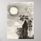Japansk sommartid i måne poster klassisk, vintage, fåglar, bläck, japan, orientalisk, tatuering, retro, gammal, dekoration, bambu, skog, månljus