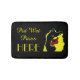 Det här humoristiska badmattan är en underbarare gåva till hundälskare eller din favoritmänniska. Bakgrunden är svart. Text "Put Blöt Tassar here" är gult. Originalfoto av en söt och personifierad japansk spitz, färgad gult, svart, röd och teal av Marcia Socolik. Alla Höger reserverade © 2015 Alan & Marcia Socolik.