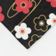 Vektorillustration av stiliserade blommar av svart, rött och vitt sakura-körsbärsblommor och gyllene snurrar på svart bakgrund. Inspirerad av Japans traditionella kimono-väv mönster.