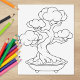 Japanska Bonsai Träd på en brickfärgningssida Stämpel