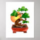 Ett litet japanskt bonsai träd, som har en traditionell vattenfärg och bläck-teckningar framför sol, som ett dekorativt poster.
