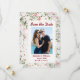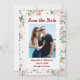 Japanska Cherry Blommars Flowers Watercolor. Rosa Vår blommor Grönt Löv Japan Stil Spara det platta datumkortet. Konvertera det här till valfri tillfälle. Byt ut fotot av paret lycklig på den front som du anpassar den här mallen. Redigera den om du vill göra fler ändringar. Allt är anpassadet att lägga till din information.