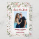 Japanska Cherry Blommars Flowers Watercolor. Rosa Vår blommor Grönt Löv Japan Stil Spara det platta datumkortet. Konvertera det här till valfri tillfälle. Byt ut fotot av paret lycklig på den front som du anpassar den här mallen. Redigera den om du vill göra fler ändringar. Allt är anpassadet att lägga till din information.