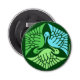 Flaska-öppnare i en klassisk japansk kimono mönster av stiliserade kranar, placerade i mönster av hexagoner, i blek- och medelspjutad grönt och ljusblå himlar-blått, på en mörk-grönt-bakgrund