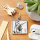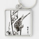 Japanska fåglar på Gren - Svarta och vita Fyrkantig Silverfärgad Nyckelring