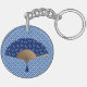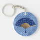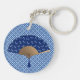Nyckelkedja i ett klassiskt japanskt fläkt PH i en traditionell japansk drakfluga, eller tombo mönster, som också kallas katsumushi ("vinnande kryp") av samuraikrigare, som använde drakflygmotiv för att åberopa seger - ljusblå drakar från himlar på mörk kobolt/marinblått, med en samordnande mönstrad bakgrund