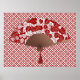 Japanska Fläkt i Löv Print, Mörk Red and White Poster