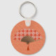 Förstklassig nyckelkedja i ett klassiskt japanskt fläkt PH i japanska Shippo, eller "sju skattningar" mönster i förreglande cirklar med en mittblommotif, blommor i kräm och tangerinäring med en djup mandarin- och pastellbakgrund med mönster av orange