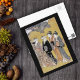 I elegant har vintage bild fyra japanska Geisha Dam. De är klädda i svarta och tanka. Bakgrunden är en gyllene gult med ett svart gräns. Se min butikskonst efter MAR för matchning av produkter med den här designen.