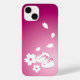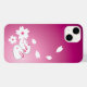 En mycket söt iPhone 14 Fodral med en illustration av två sakurablommor, två japanska kaniner från snö och fyra sakurablommor mot en lila bakgrund.