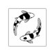 Enkel svart-vit vektillustration av ett par japanska karpar som simmar runt varandra. Koi är en färgrik karp som domesticerades i Japan.