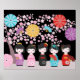 Japanska Kokeshi Dolls Black Poster