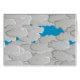 Det moderna japanska molnanteckningskortet mönster - stiliserade moln i silkesfärgade övertoningar av vitt till blek silver grått / grått, accentuerade med glimmer av klart blå himmel
