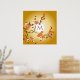 Japanska plommon Blommar Måne Guld Orange Red Gren Poster